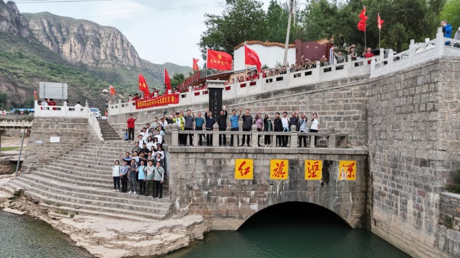 大家顶着炎炎烈日,一路走、一路听、一路看、一路讲,一路交流、一路思考,感悟工程的伟大、感受林州的变化、体会精神的力量、思考自身的责任担当。历时7个多小时,团队抵达红旗渠源——山西省平顺县石城镇。