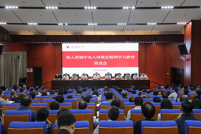 6月26日下午,我校在勤业楼一楼阶梯会议室召开深入贯彻中央八项规定精神学习教育推进会。校党委书记王全良出席会议并讲话,在校校领导、全体中层干部参加会议。校长孔国庆主持会议。