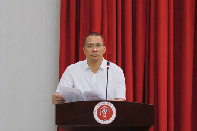 会上,副校长刘振红宣读了《中共安阳师范学院委员会 安阳师范学院关于表彰2024—2025学年度优秀教师和优秀教育工作者、从事教育工作三十年以上的教育工作者颁发荣誉证书的决定》,通报2024—2025学年教职工受上级表彰情况。副校长杜记民宣读了《关于表彰2025年考研先进单位的决定》《关于表彰2024年度目标任务完成优秀单位的决定》。