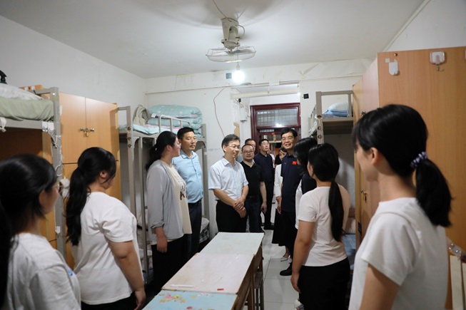 9月14日,校领导孔国庆、牛晓玉、王宏伟、仲利娟、杜记民、刘振红、杨新宇、柏䶮、时斌分别深入学生宿舍区,亲切看望2025级新生。