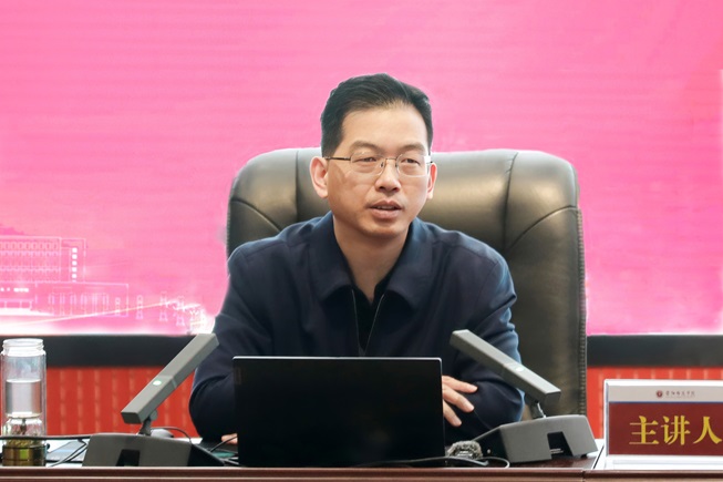 12月17日上午,我校在勤业楼一楼阶梯会议室召开校党委理论学习中心组(扩大)学习会暨党的二十届四中全会精神宣讲会。省委理论宣讲团成员、校党委书记孔国庆作专题宣讲。会议由校党委副书记王宏伟主持。