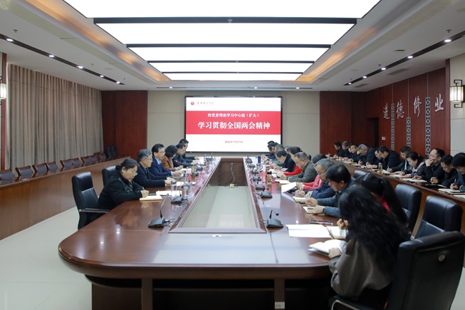 3月17日上午,我校召开党委理论学习中心组(扩大)会议,深入学习贯彻习近平总书记在全国两会期间的重要讲话精神和全国两会精神,传达学习省委有关工作部署,安排部署我校贯彻落实工作。全体校领导,党委理论学习中心组成员,相关职能部门负责人,各基层党委书记参加会议。校党委书记孔国庆主持会议并讲话。